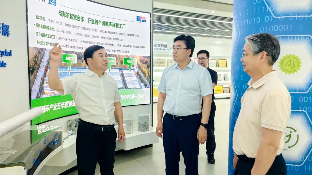 In the lobby on the first floor of Dawn Group's headquarters, leaders from BUCT's Student Affairs Office and Enrollment Office listened to briefings on the company's development, technological innovation, industry status, and social responsibilities. In Longkou New Materials Science and Technology Industrial Park, the guests inspected Dawn's industrial chain, product chain, enterprise chain construction, and park development. Accompanied by Chairman Yu Xiaoning, Secretary Song Laixin visited the Dawn New Material Exhibition Center to learn in detail about the industrial layout, chain operation, and achievements of industry-university-research cooperation.