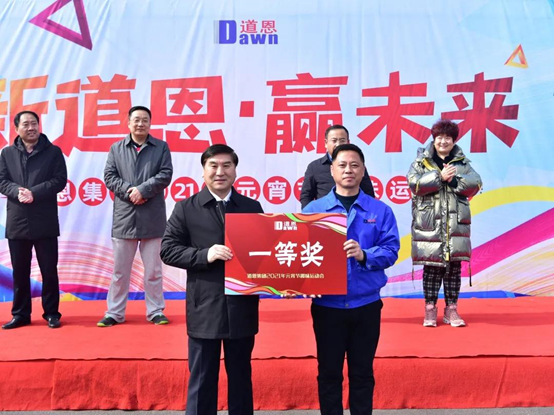 On February 26, Dawn Group’s 2021 Lantern Festival Fun Games with the theme of "New Dawn Winning the Future" was grandly held at Dawn College Student Dormitory Stadium. Yu Xiaoning, Chairman and President of Dawn Group, and members of the leadership team had the fun sports game with cadres and employees, which emphasized that the team spirit, fighting spirit, and competitive spirit demonstrated in the competition should be integrated into the work and new actions, new images, and new breakthrough should be realized on the new journey.