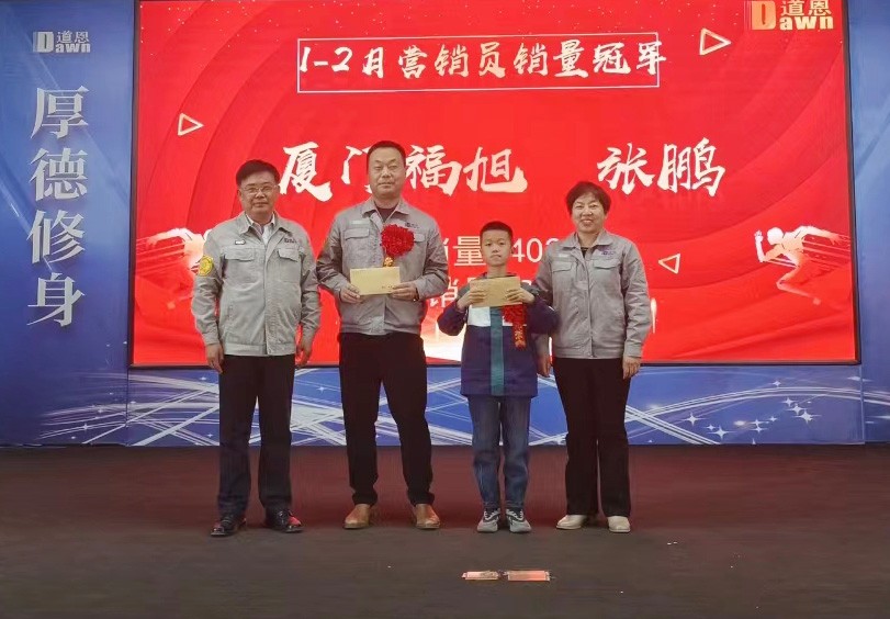 “爸爸是销售冠军,我在学习中也要努力争第一!”在4月7日召开的678体育化学有限公司一季度营销总结表彰会议上,该公司一、二月份销售冠军,厦门福旭新材料科技有限公司业务员张鹏的儿子张宸溪如是说。当天,同时被请上主席台的员工家属还有,该公司三月份销售冠军、浙江华旭石化有限公司郑鹏的妈妈孙会秋。