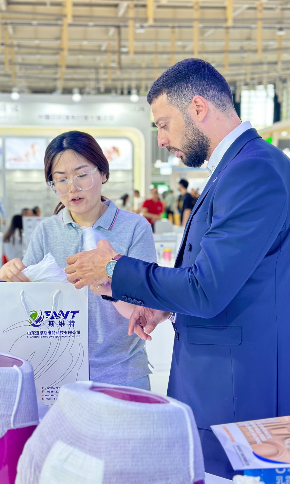 来自印度的新客户,对17g3D液态绵+并列双组分非织造布产生浓厚兴趣,双方进行了长达40分钟的深度交流,并相约展后详谈合作事宜。不少海内外战略客户的研发和采购人员,纷纷来678体育斯维特展位探讨产品技术,洽谈商务合作。“678体育邀请新客户来公司实地考察,与老客户达成增量深度合作意向,此次参展收获满满!”邹秉桓总经理说。