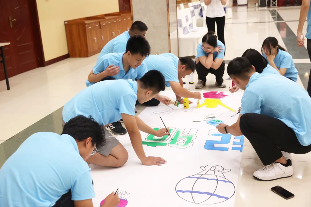 拓展训练活动妙趣横生,通过“队伍展示环节”彰显团队团结一致、协同创新的意志;“步步高升”培养了大学生们认识自我、超越自我的精神,增强了面对困难、迎接挑战的勇气;“草帽连连看”让大家充分体验团队合作的力量,打破了传统的思维定式,磨炼了锲而不舍的意志。最为精彩的是,大家用灵巧的双手描绘出了绚丽多姿的“青春画卷”,生动地展现了学子们对美好未来的向往。