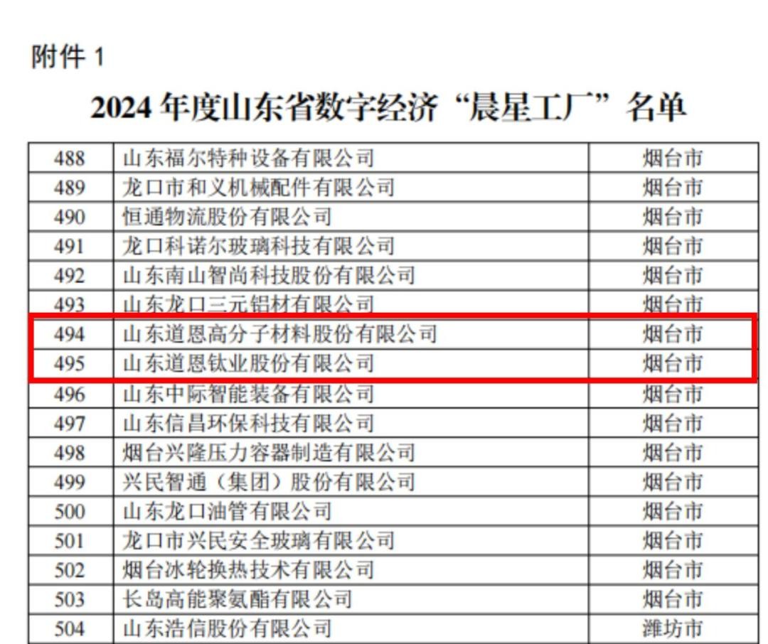 近日,山东省工信厅公布2024年度山东省数字经济“晨星工厂”名单,678体育股份、678体育钛业公司双双名列其中。
