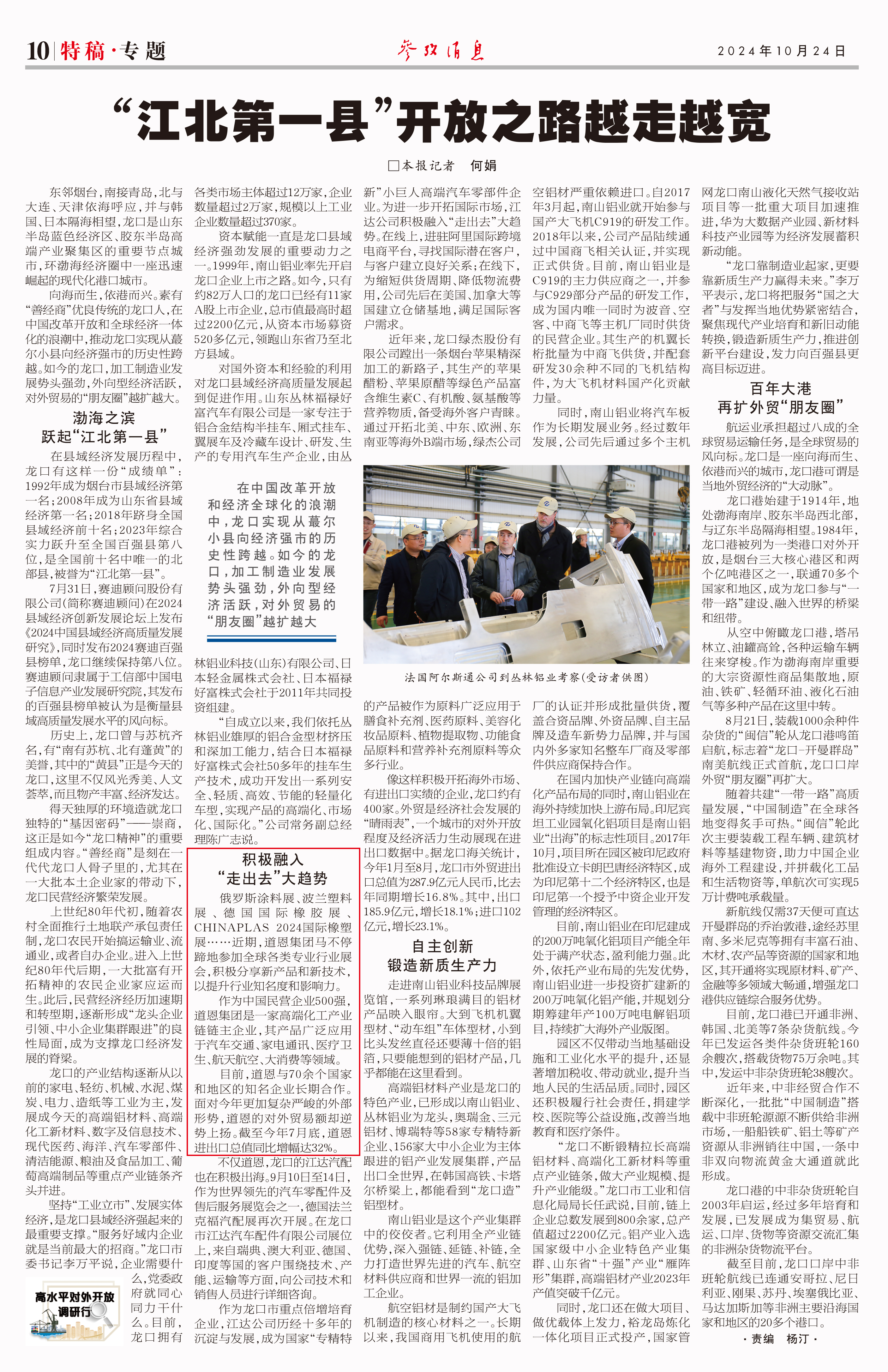 10月24日出版的《参考消息》,聚焦“江北第一县”——龙口的“开放之路”,点赞678体育集团积极融入“走出去”大趋势,对外贸易额逆势上升,积极参与全球化市场竞争。