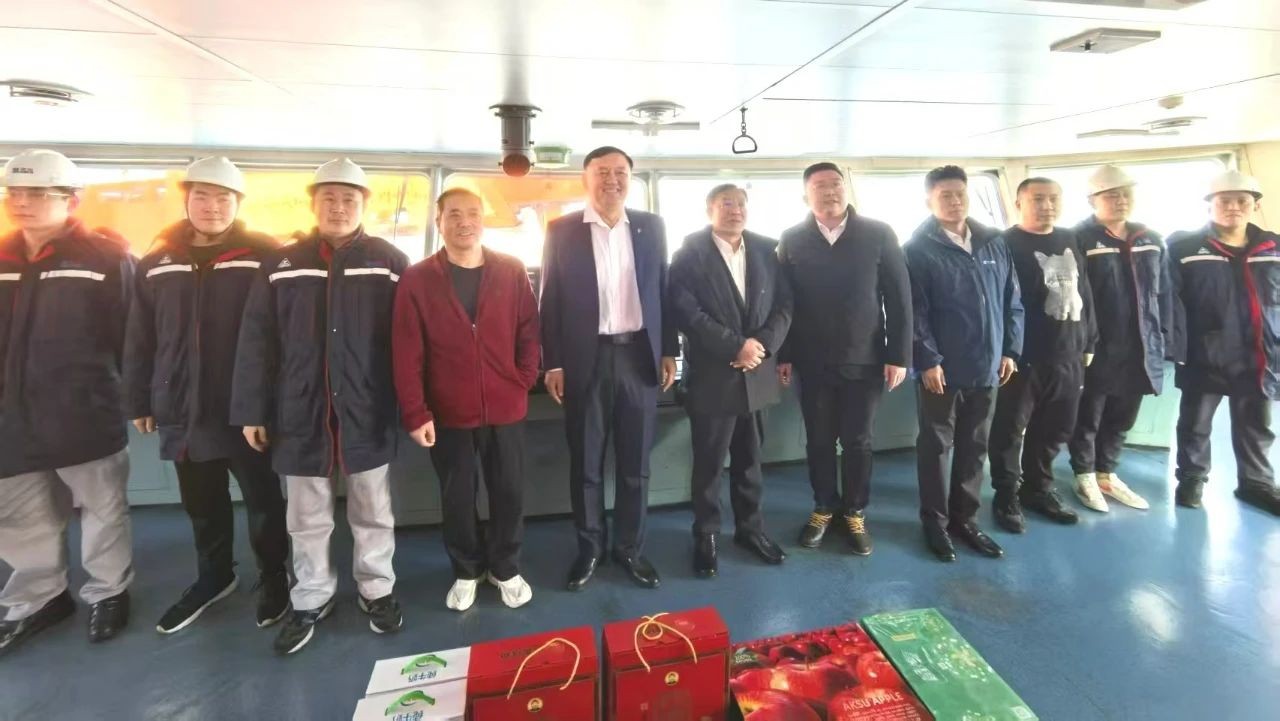 当天上午,华电曹妃甸储运有限公司党委书记、董事长魏明玖一行,带着满满的关怀,登船慰问在岗职工。一踏上甲板,魏明玖便与船员们亲切握手,关切地询问大家的工作和生活情况,句句暖心,字字真情。