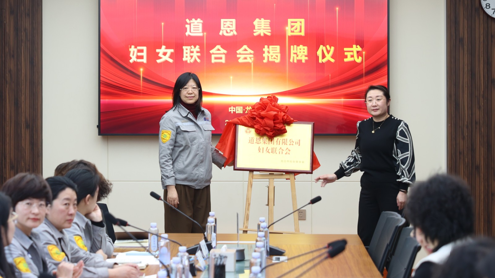 车静主席和刘丽丽主席为678体育妇联揭牌