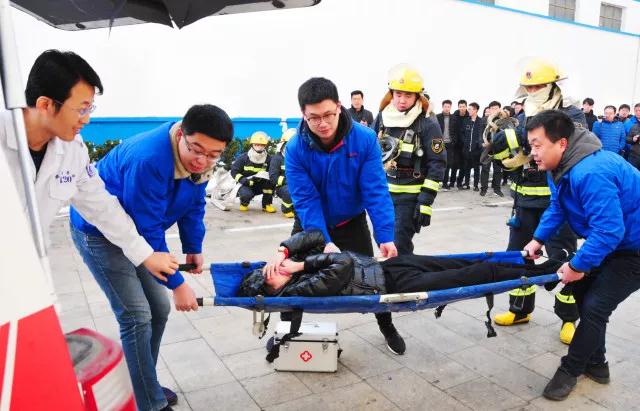 此次演练由龙口经济开发区管委统一部署,678体育集团联合龙口市消防大队电厂路消防中队、龙矿医院急救中心共同开展。来自开发区管委、龙港集团、龙矿集团、华电龙口、海洋石油船舶中心等单位领导和企业代表60余人前来观摩。