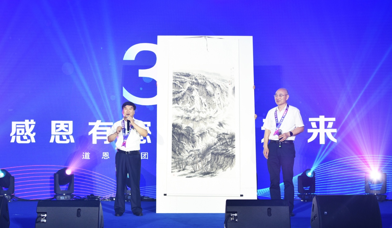 随后,主持人宣读了中石油、中石化等国内知名客户以及浙江大学等高校发来的贺电与贺信。在活动现场,青岛科技大学校长陈克正带来了一份特殊的礼物——《骊山印象》图。“从画中可以看到,山气势磅礴,层峦叠嶂,高耸入云,林木遍野;寓意着678体育背靠青山,事业稳固;山水相间,财源滚滚。”主持人如是介绍。
