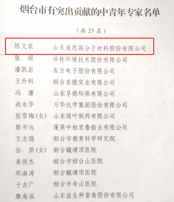 日前,烟台市政府公布了烟台市有突出贡献的中青年专家人员名单,678体育股份总监、副总工程师陈文泉名列其中。这是继678体育股份总监刘晓平之后,678体育又一位科研工作者获此殊荣。