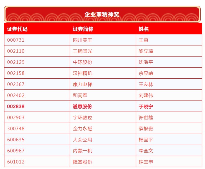 “金圆桌奖”被誉为中国上市公司董事会领域的第一奖,是中国上市公司治理水平的重要评价标杆,在资本市场具有广泛的影响力。该奖项专注于中国董事会制度建设和公司治理领域的高端公益品牌奖项,在持续跟踪研究上市公司公司治理和董事会建设的基础上,以详实的数据、客观的标准,最终评定出当年中国上市公司“金圆桌奖”的各单项奖。