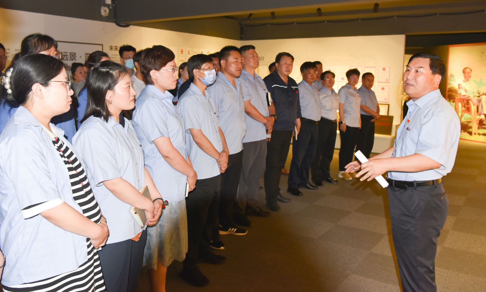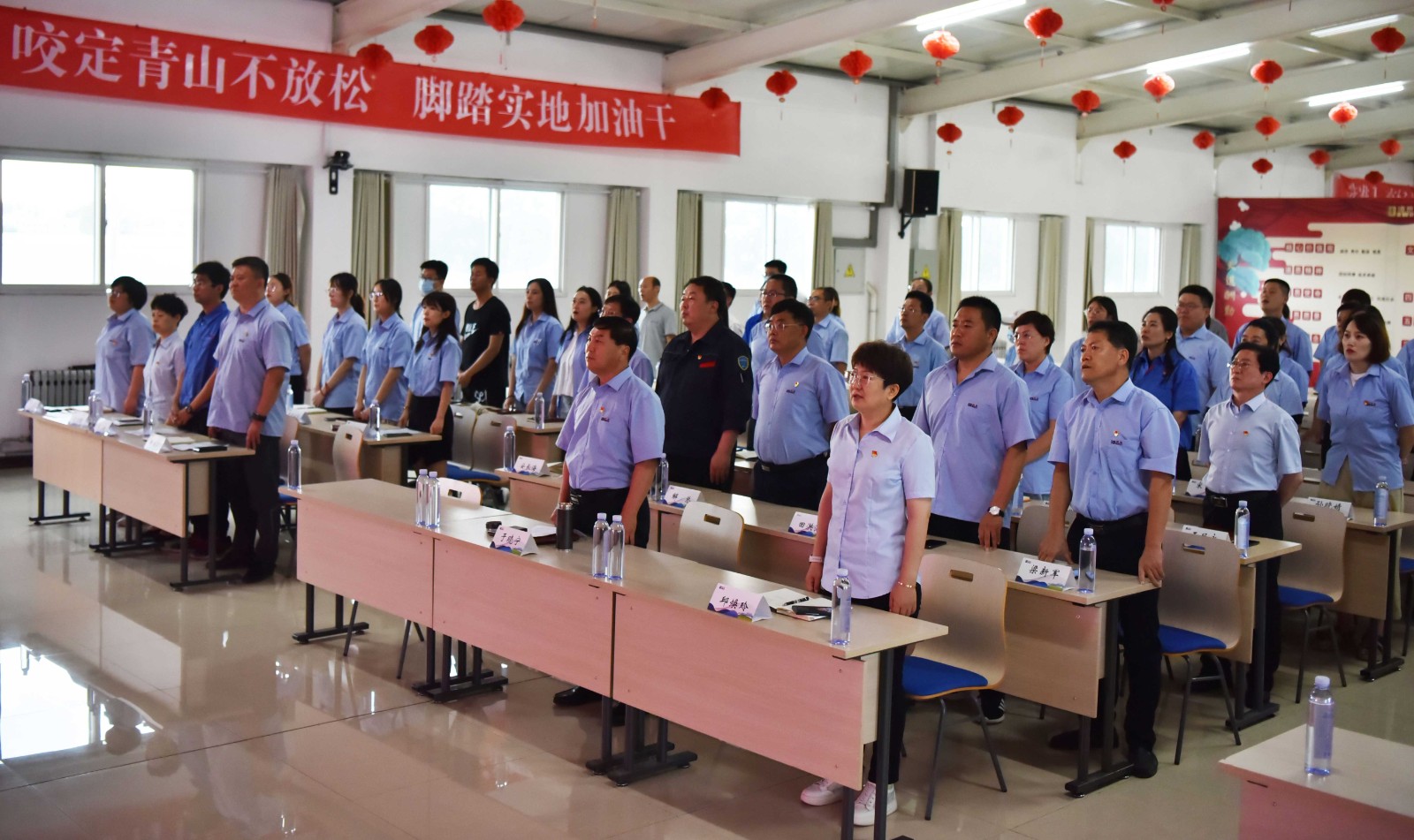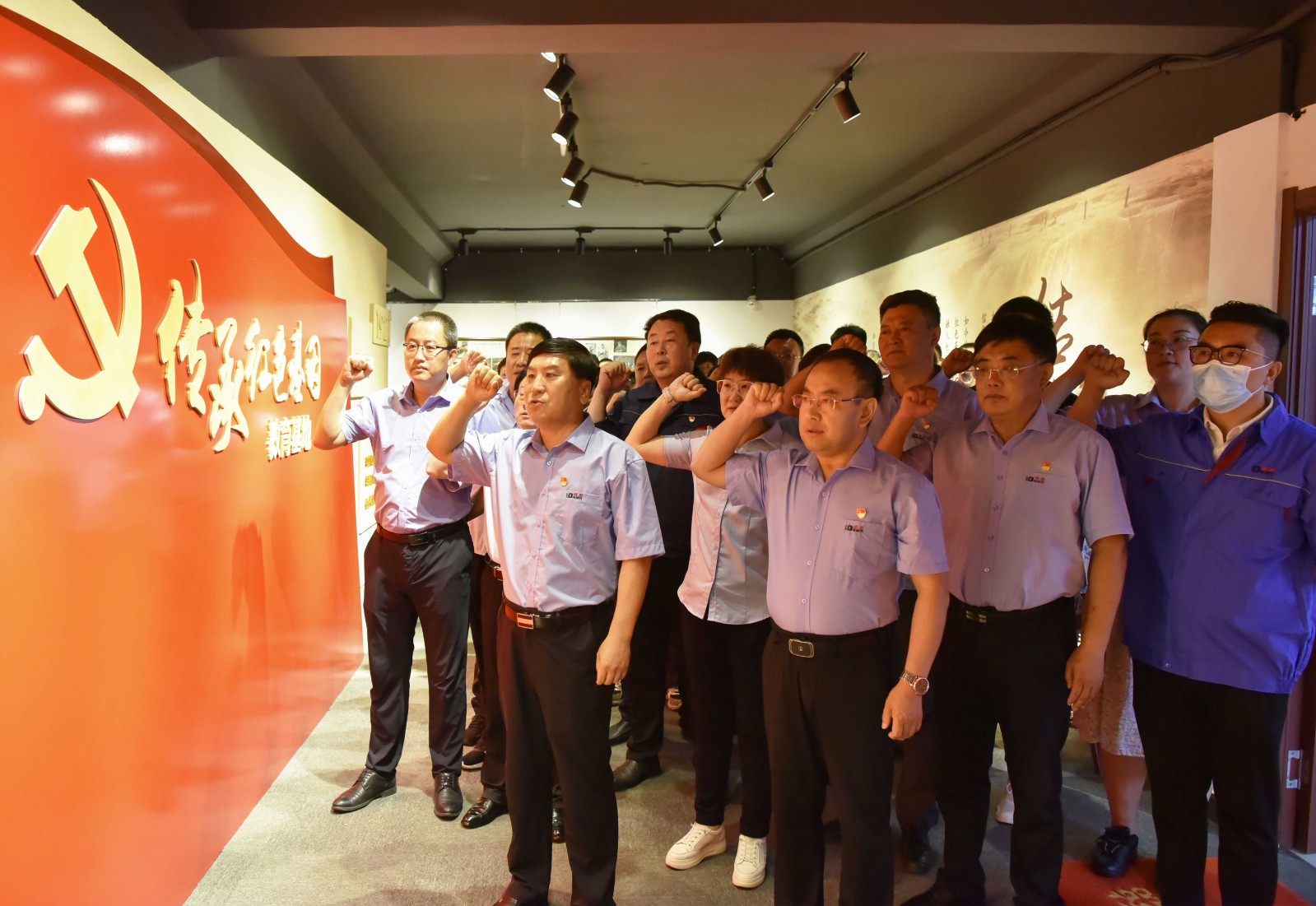 在党委书记于晓宁的带领下,与会人员参观了传承红色基因教育基地,实地感受党在发展历程中沉淀下来的红船精神、延安精神、工匠精神。“我志愿加入中国共产党……”于晓宁书记与党员干部高举右拳,庄严宣誓,铮铮誓言,响彻全场。