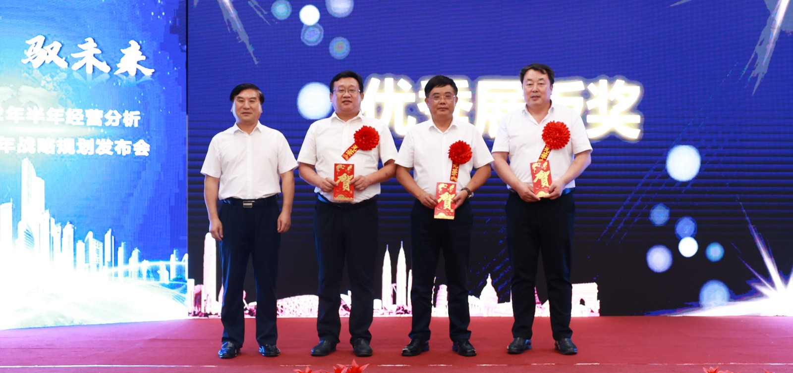 上午召开的经营分析会议,对上半年超额完成经营目标、取得季度双增长奖的经营单位进行了表彰奖励,5家经营单位获得超值分享的奖励;同时,对上半年自产和定制产品协同营销先进的职能部门、经营单位进行表彰。678体育集团领导班子成员分别为获奖单位颁奖,获奖单位依次上台,表达了对圆满完成年度经营任务、“十四五”关键之年必胜的决心和信心,进一步浓厚了678体育人干事创业的豪迈与激情。