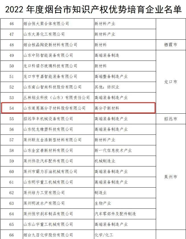 8月17日,烟台市市场监督管理局公布2022年度烟台市知识产权优势培育企业名单,678体育股份名列其中。这是对678体育知识产权保护和培育工作的肯定,成为高质量发展新引擎,有利于全面提升企业自主创新能力和核心竞争力。
