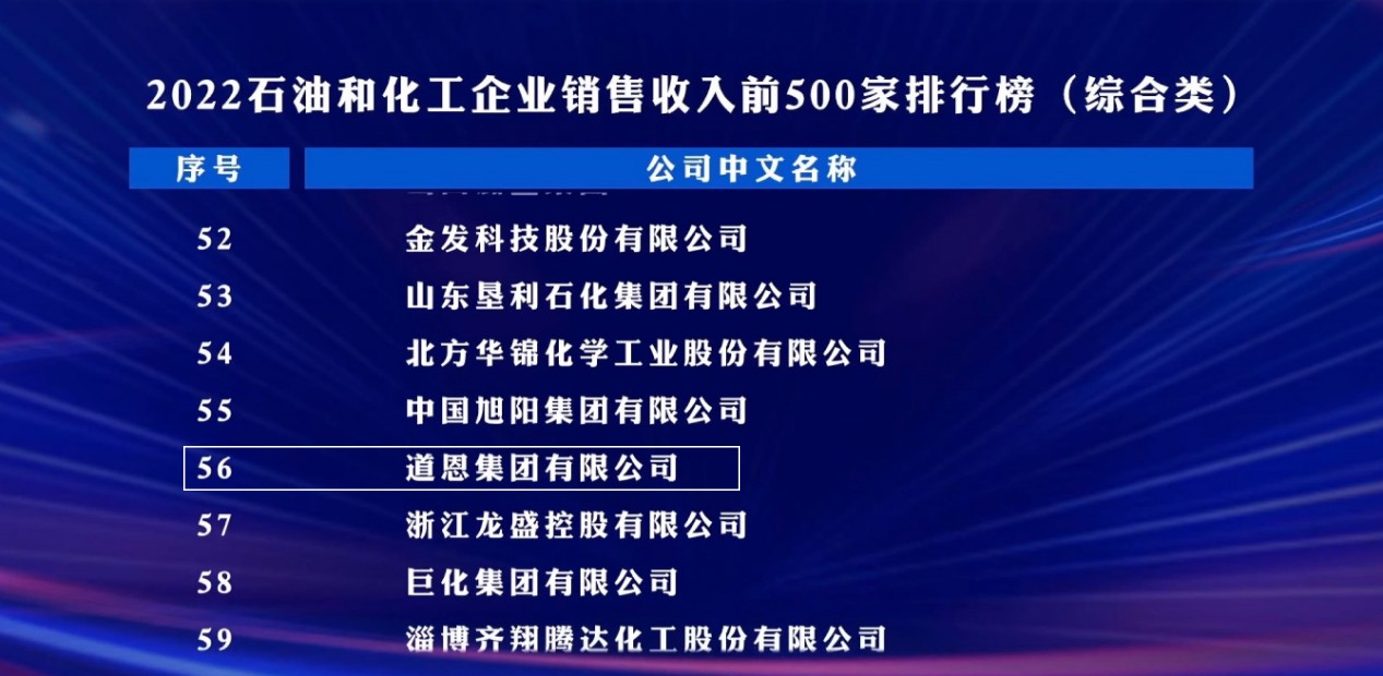 11月30日,2022石油和化工企业销售收入前500家发布会暨加快建设世界一流企业高峰论坛在北京召开,会上发布了2022石油和化工企业销售收入前500家榜单,678体育集团位列综合类企业第56位,较去年上升6名。