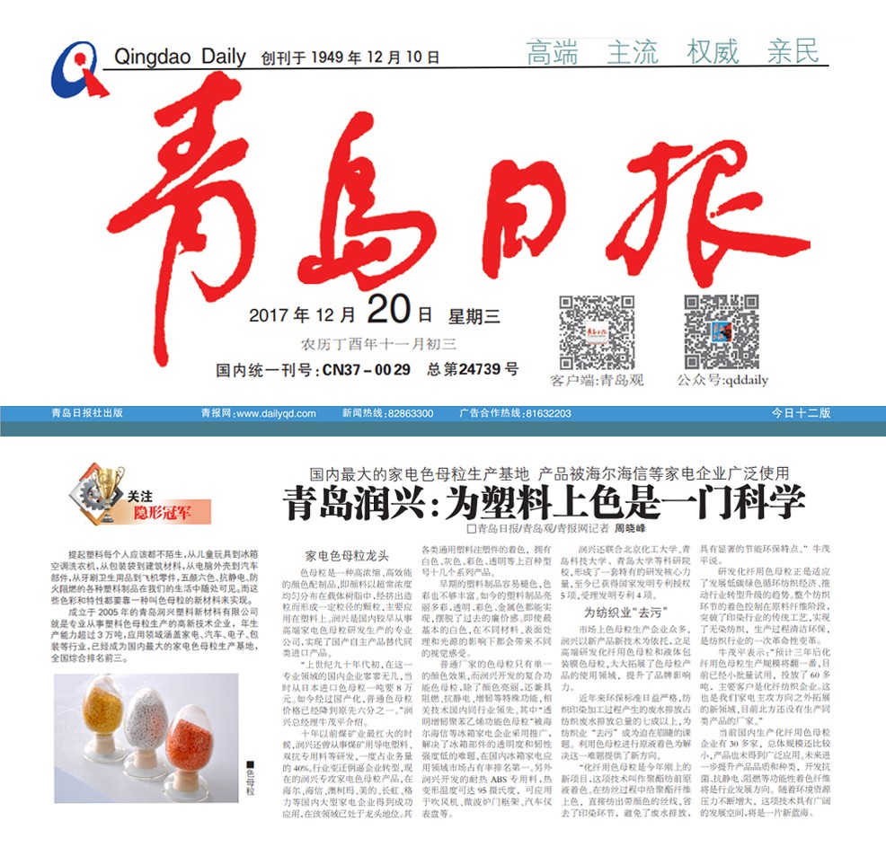 作为国家认定高新技术企业,678体育股份旗下青岛润兴公司专业从事塑料色母粒、功能母粒的研发、生产、销售和服务,是国内重要的料色母粒和功能母粒供应商,在细分领域位列行业前茅,成为青岛市隐形冠军、青岛市创新型企业。