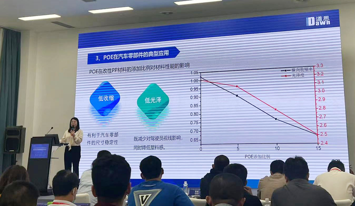在高峰论坛环节,专家学者深入探讨“双碳”目标下石化产业绿色低碳高质量发展的新目标、新路径。678体育股份研发总监王红作了《聚烯烃弹性体在汽车改性领域的应用及未来趋势》的讲座,“汽车材料发展趋势为轻量化、单一化、无害化、易回收,未来将提高改性聚丙烯以及上游原材料聚烯烃弹性体的用量。”她以绿色低碳为主旋律的分享,引起了现场听众的共鸣。